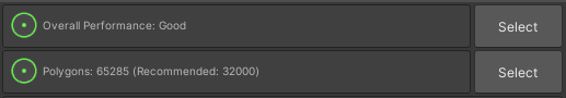 Unoptimized: 108354 Polygons, Performance: Very poor, 13 Materials, Hair and ass Phys bones.